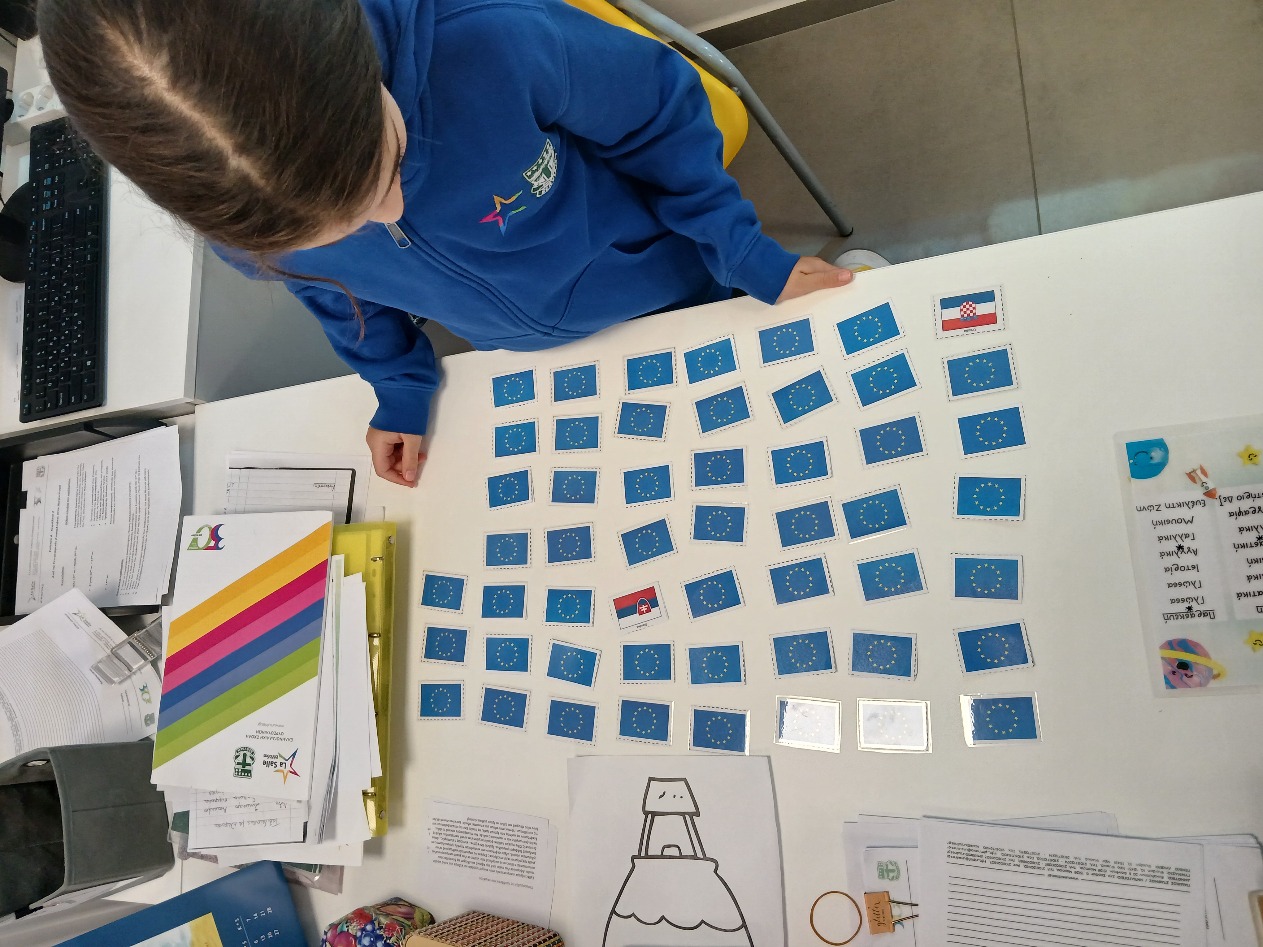 Έπαιξαν διασκεδαστικά παιχνίδια με τις σημαίες των ευρωπαϊκών χωρών, τις οποίες ζωγράφισαν και χρωμάτισαν, ενώ γνώρισαν και διάφορα σπουδαία ευρωπαϊκά μνημεία μέσα από δημιουργικές δραστηριότητες.