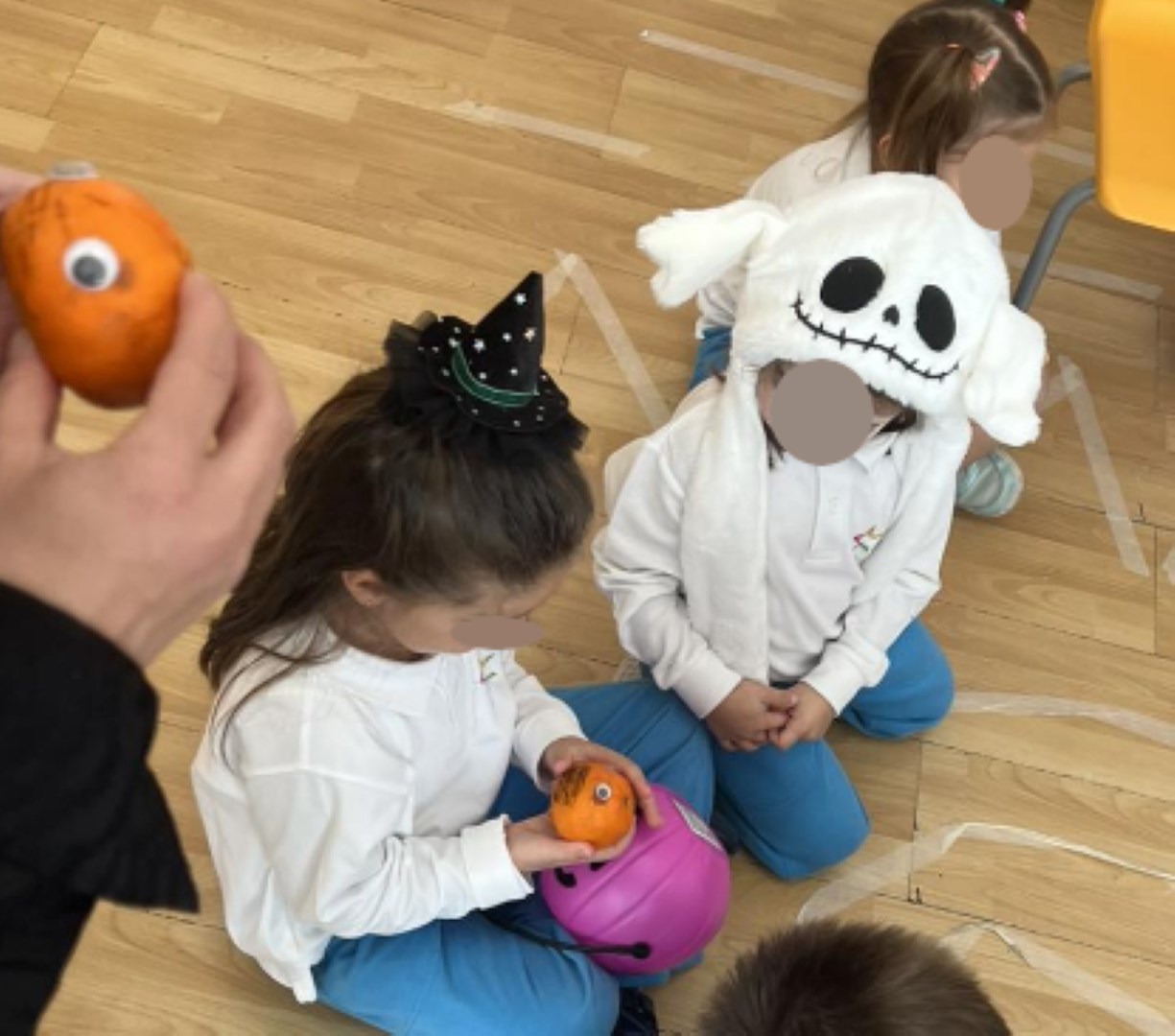 Μιλήσαμε για την προέλευσή του και την παράδοση του trick or treat, στολίσαμε τις τάξεις μας, μεταμορφώσαμε μανταρίνια σε μικρές “κολοκύθες” και παίξαμε διασκεδαστικά παιχνίδια όπως spider race και musical pumpkins.