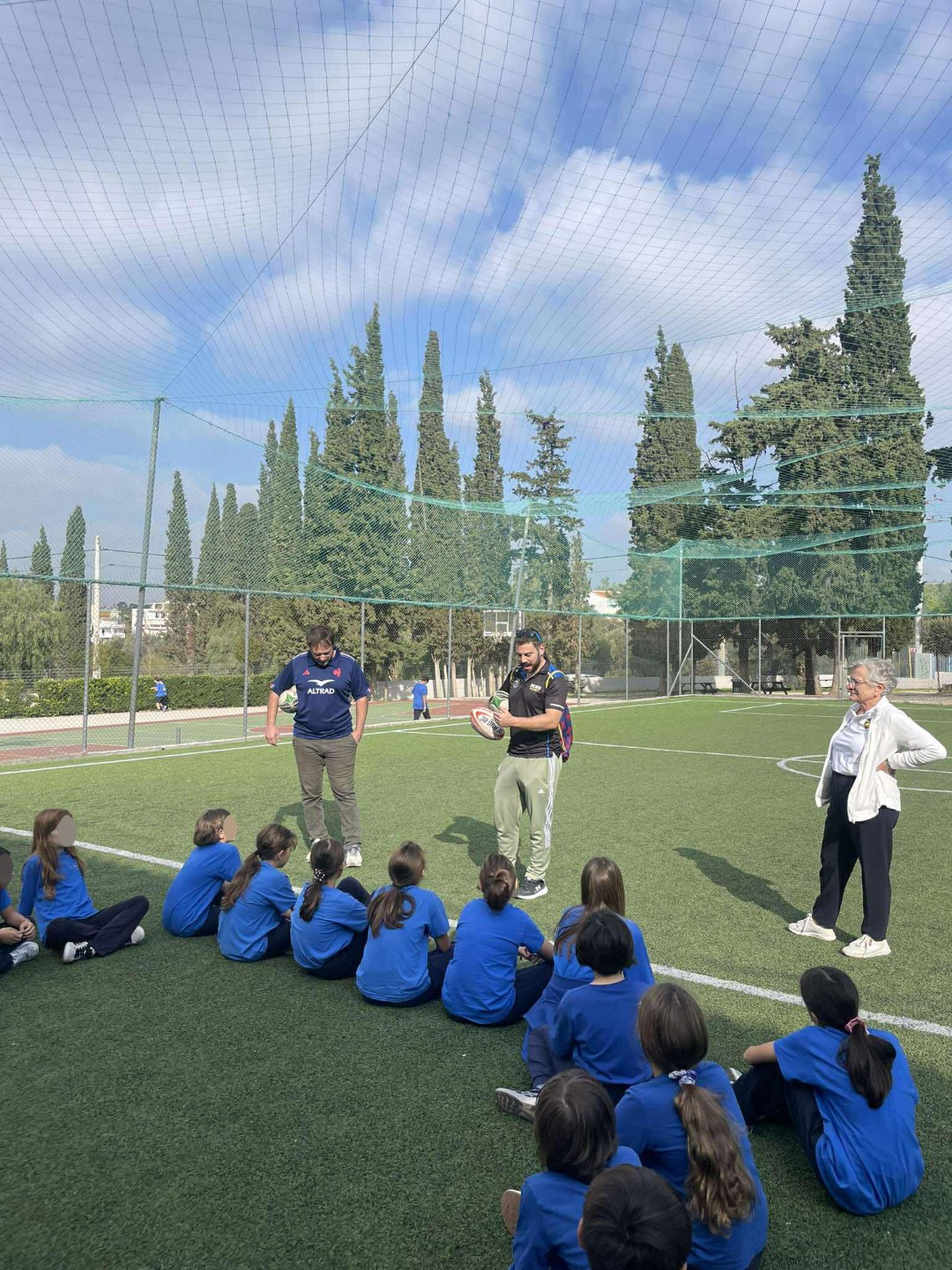 Τη Δευτέρα 3 Νοεμβρίου, οι μαθητές και οι μαθήτριες της Ε’ τάξης μπήκαν στο γήπεδο και γνώρισαν το συναρπαστικό άθλημα του ράγκμπι!