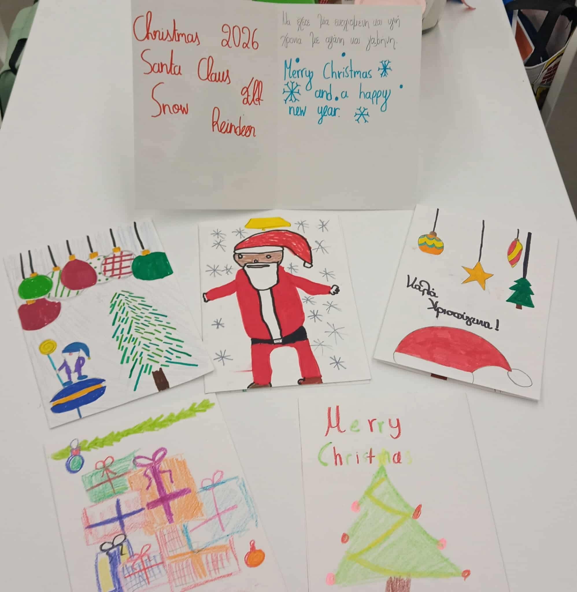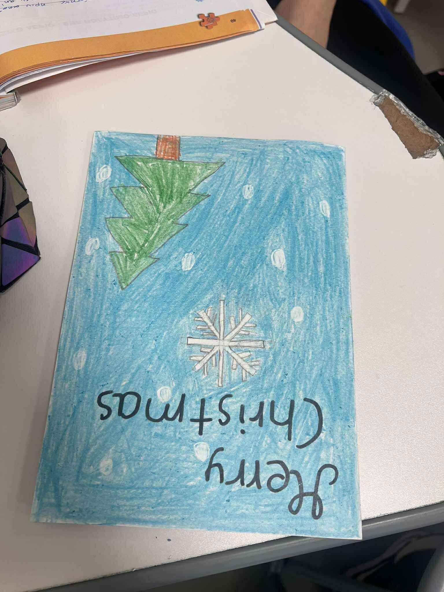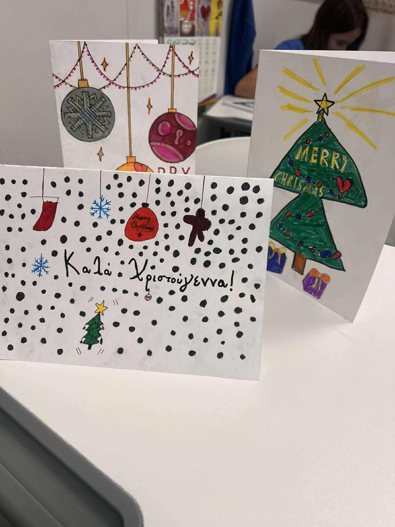 Οι κάρτες αυτές ταξιδεύουν στους συνομηλίκους τους, τους μαθητές της Ε’ τάξης του Δελασάλ Αλίμου, μεταφέροντας ευχές, χαμόγελα και το αληθινό μήνυμα των γιορτών: τη χαρά της προσφοράς και της σύνδεσης!