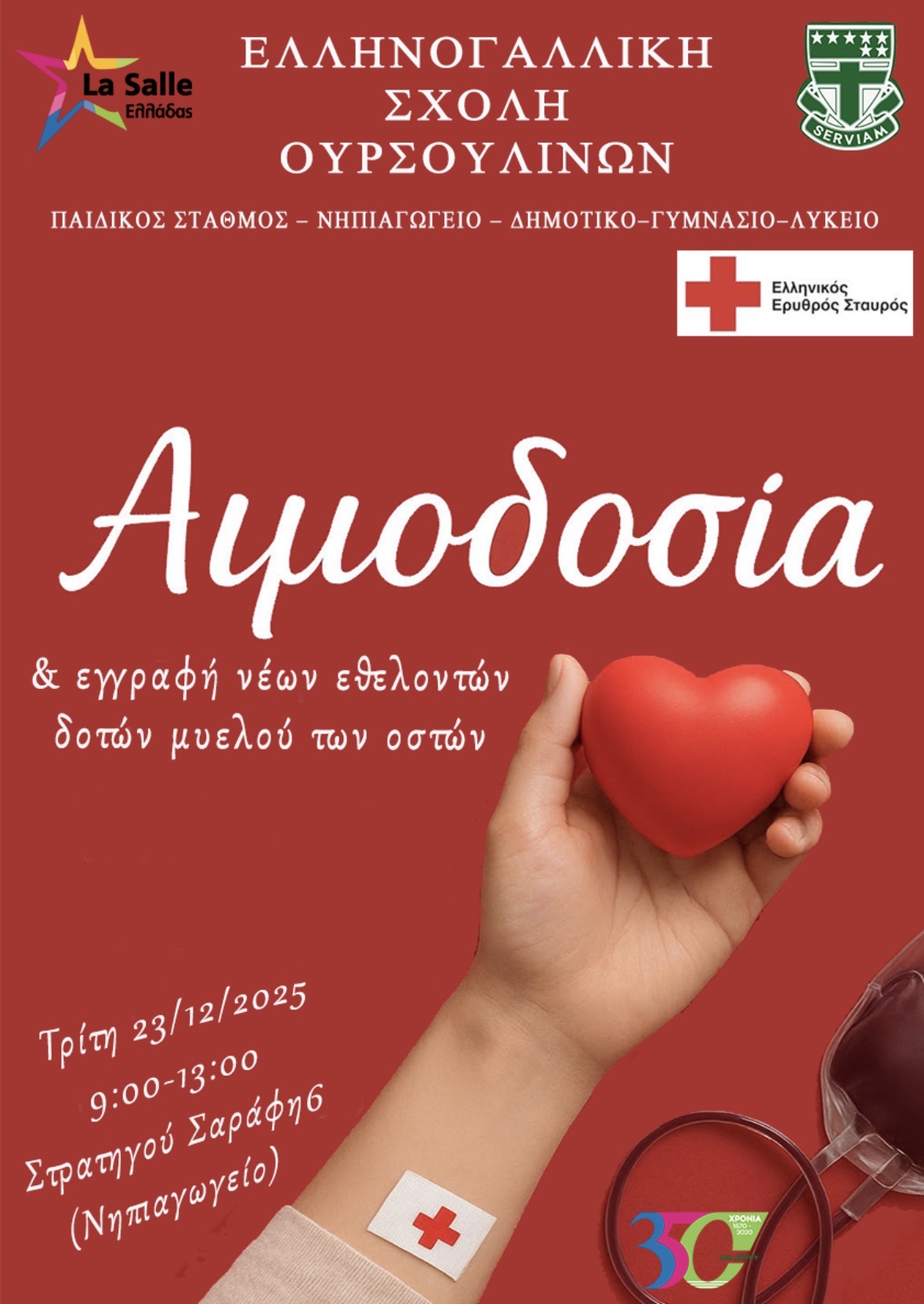 Σας υπενθυμίζουμε την εθελοντική αιμοδοσία που διοργανώνεται στο σχολείο μας, μια δράση με βαθιά κοινωνική αξία και ουσιαστικό αντίκτυπο.
