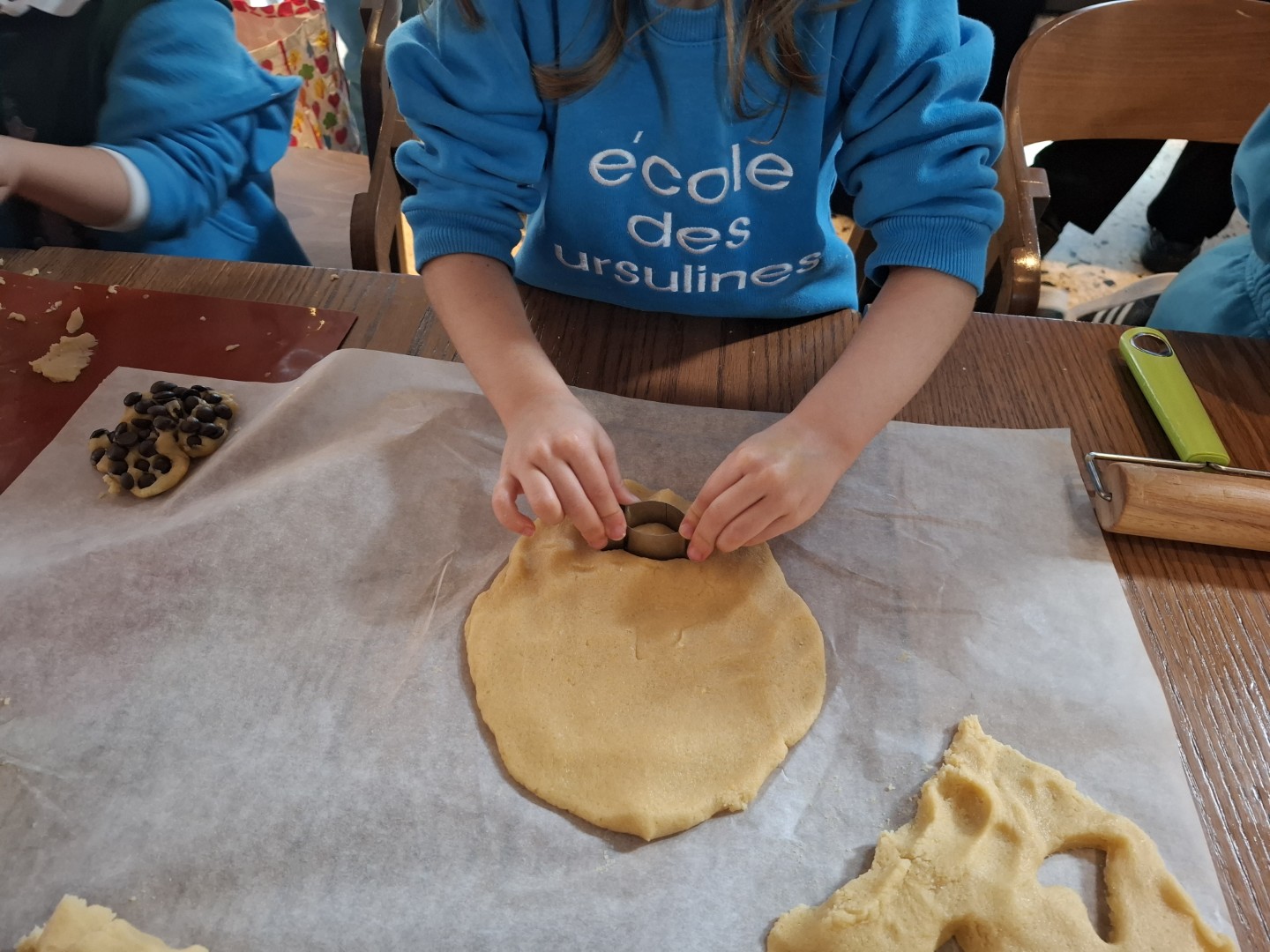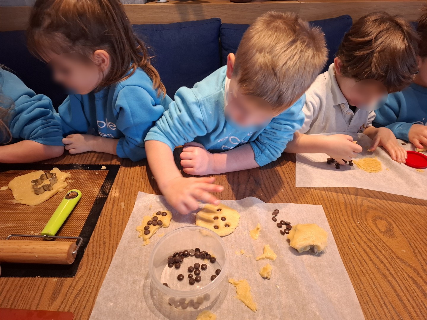 Τα παιδιά γνώρισαν τον χώρο της κουζίνας, παρακολούθησαν πώς εργάζονται οι «αληθινοί μάγειρες» και … αφού σήκωσαν ψηλά τα μανίκια, άνοιξαν ζύμες, τις στόλισαν με σοκολάτα και δημιούργησαν τις δικές τους γιορτινές λιχουδιές.