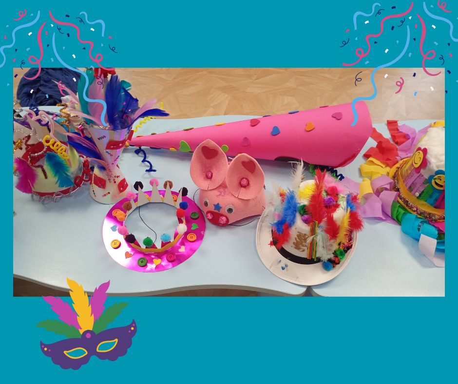 Με τη βοήθεια των αγαπημένων τους, τα παιδιά δημιούργησαν μοναδικά αποκριάτικα καπέλα, βάζοντας τη δική τους πινελιά σε κάθε λεπτομέρεια. Με ενθουσιασμό και περηφάνια παρουσίασαν τις δημιουργίες τους, σκορπίζοντας χαμόγελα σε όλους μας.