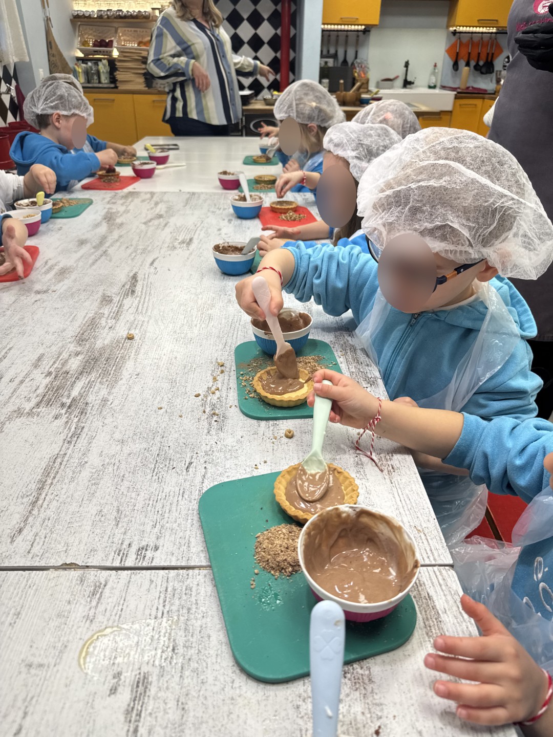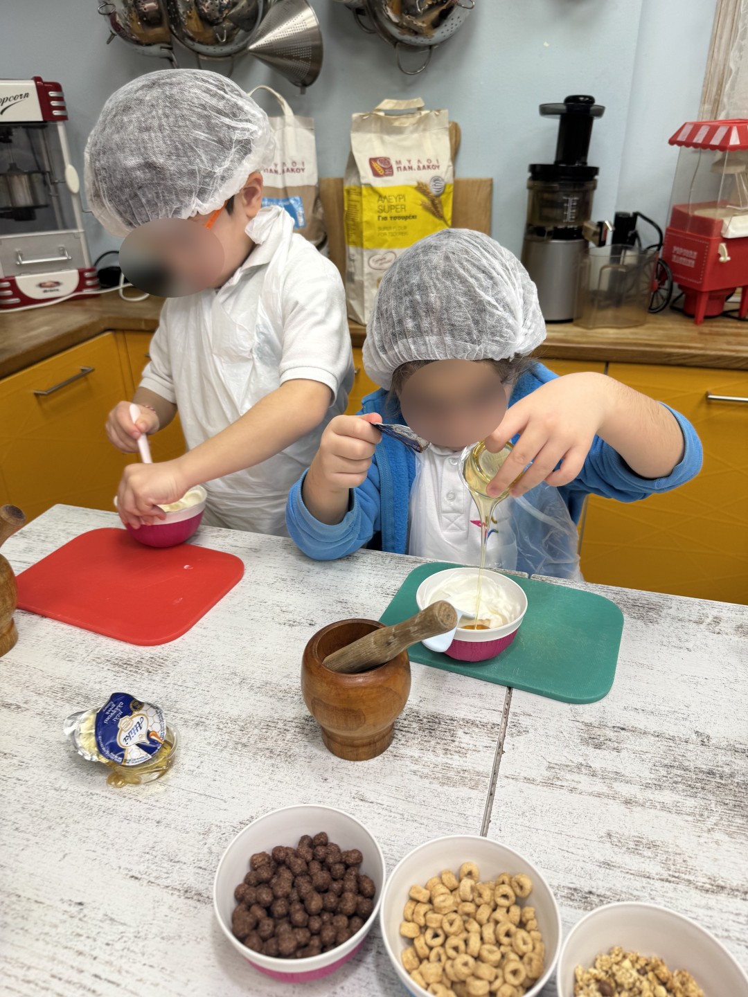 Με μεγάλο ενθουσιασμό φόρεσαν τις ποδιές τους και δημιούργησαν μια λαχταριστή τάρτα με γιαούρτι, κακάο, σταφίδες και δημητριακά. Μέσα από τη διαδικασία της μαγειρικής, ανακάλυψαν τη χαρά της δημιουργίας, της συνεργασίας και της γευστικής εξερεύνησης.