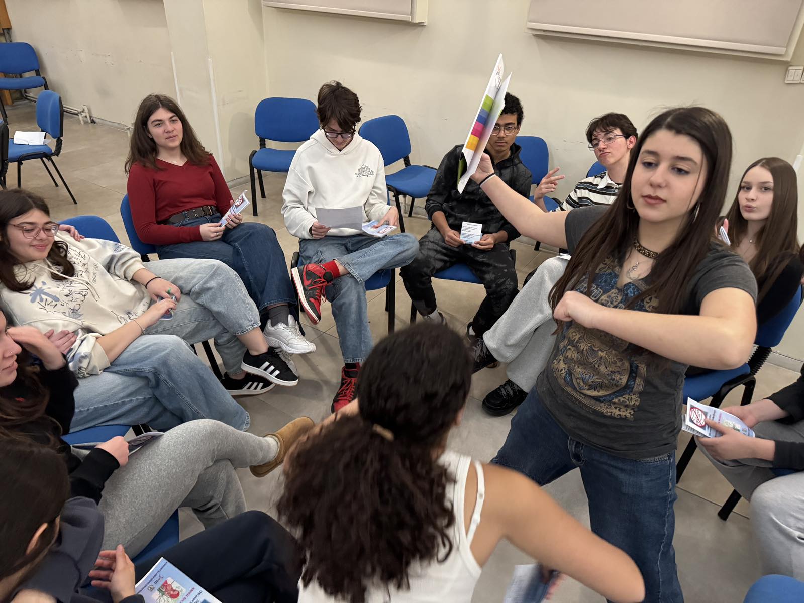 Στα βιωματικά εργαστήρια με τίτλο «Λέξεις, Πράξεις και Ευθύνη: Μαθαίνοντας να Σταματάμε τη Βία», οι μαθητές αντάλλαξαν σκέψεις πάνω σε ρεαλιστικά σενάρια έκφρασης ενδοσχολικής βίας και εκφοβισμού αναδεικνύοντας τη σημασία της υπευθυνότητας, του σεβασμού και της ενσυναίσθησης στην καθημερινή σχολική ζωή.