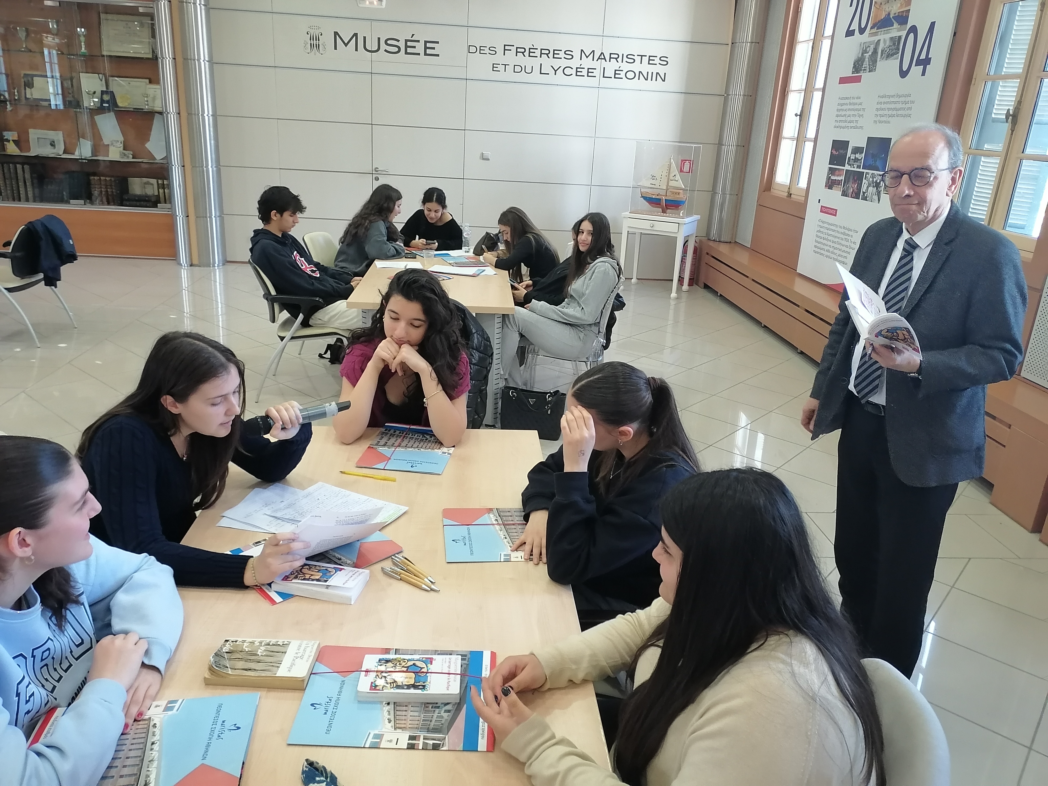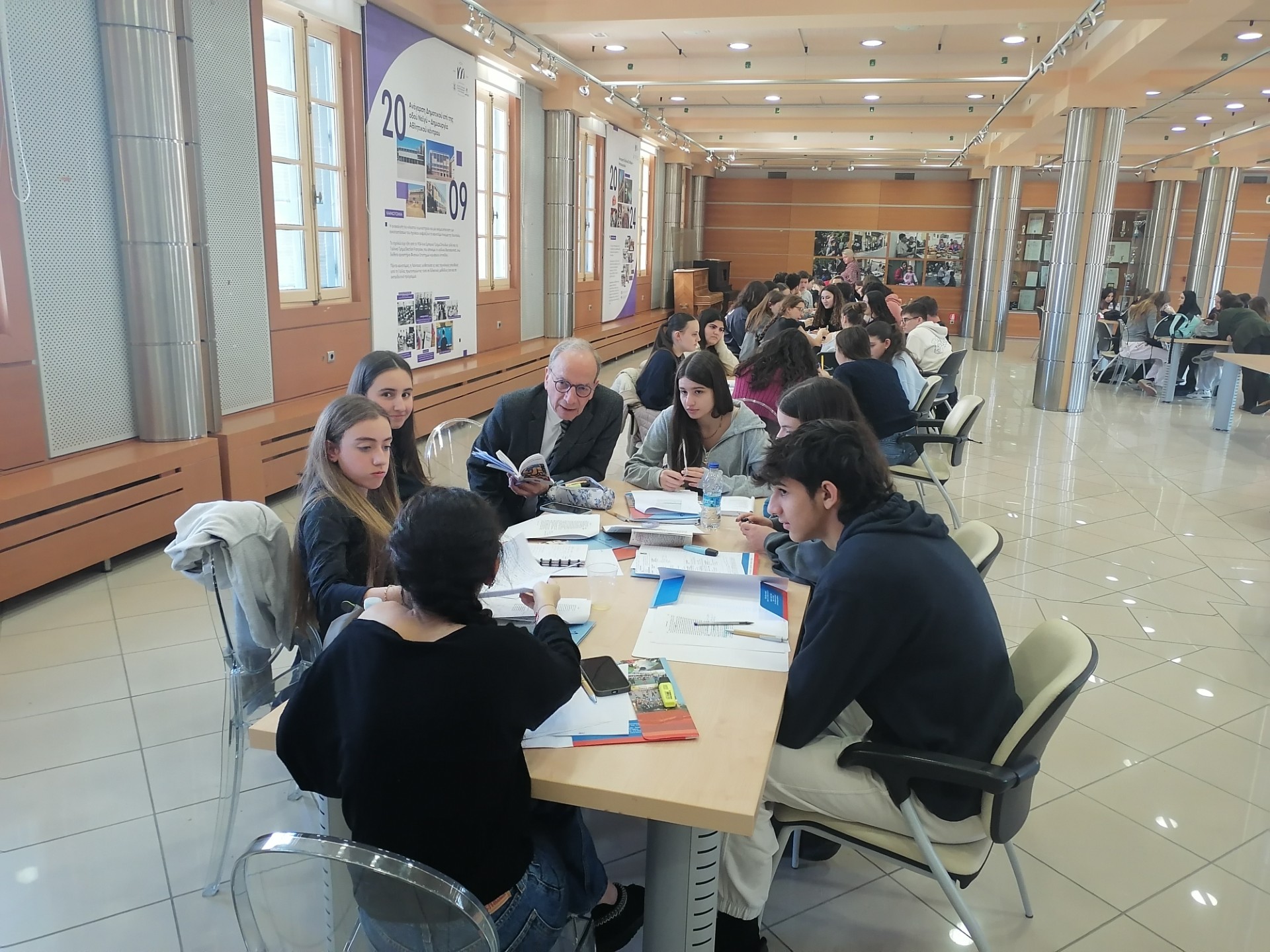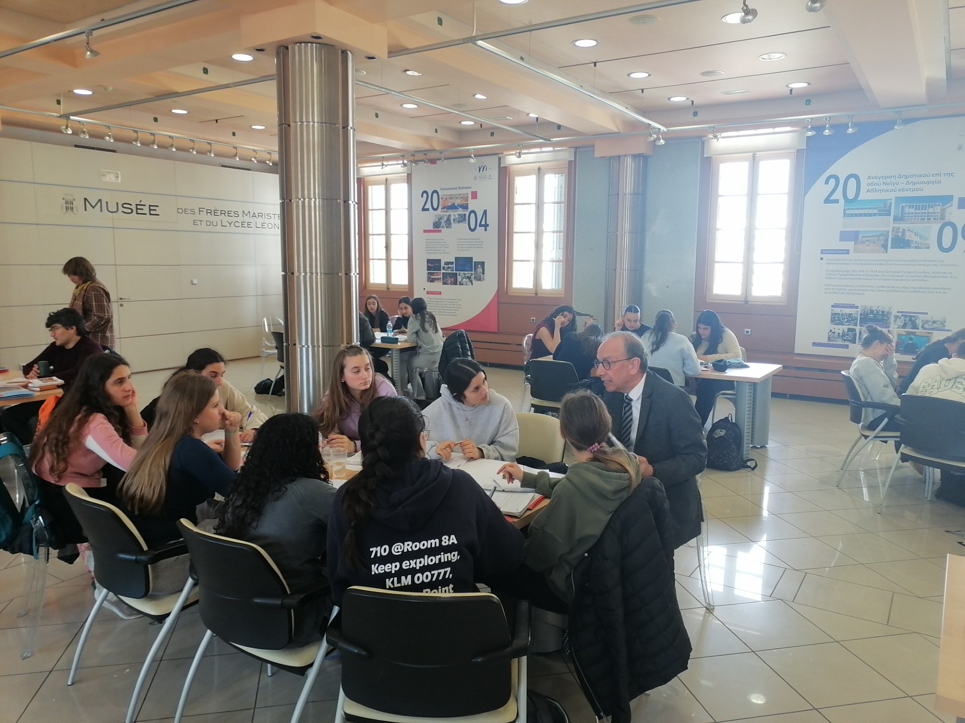 Μία μέρα γεμάτη … λογοτεχνία πέρασαν 57 μαθητές του Λυκείου της Ελληνογαλλικής Σχολής Ουρσουλινών, φιλοξενούμενοι από τη Λεόντειο Σχολή Αθηνών. Με αφορμή το λογοτεχνικό έργο που μελετούν για τις εξετάσεις του Sorbonne C1, είχαν την τιμή να ακούσουν την πλούσια εισήγηση του καθηγητή του Πανεπιστημίου της Σορβόννης Paris IV, Μ. Denis LABOURET. Στη συνέχεια, χωρισμένοι σε ομάδες σχολίασαν επιλεγμένα αποσπάσματα του έργου - πάντα υπό την καθοδήγηση του κου Labouret - και παρουσίασαν τα συμπεράσματά τους.