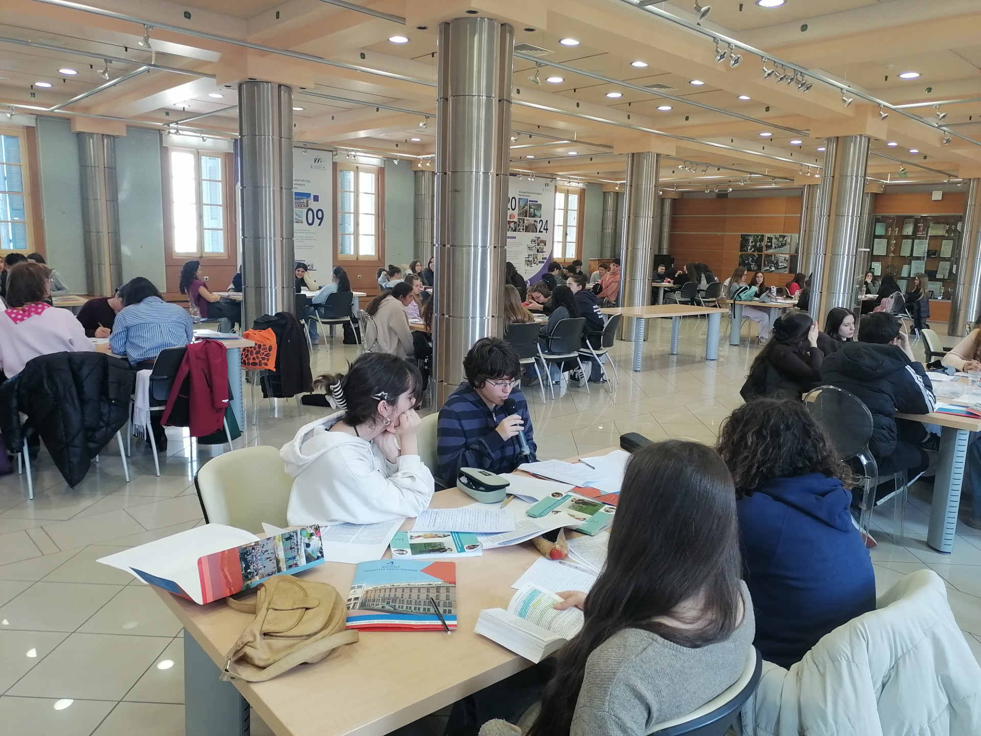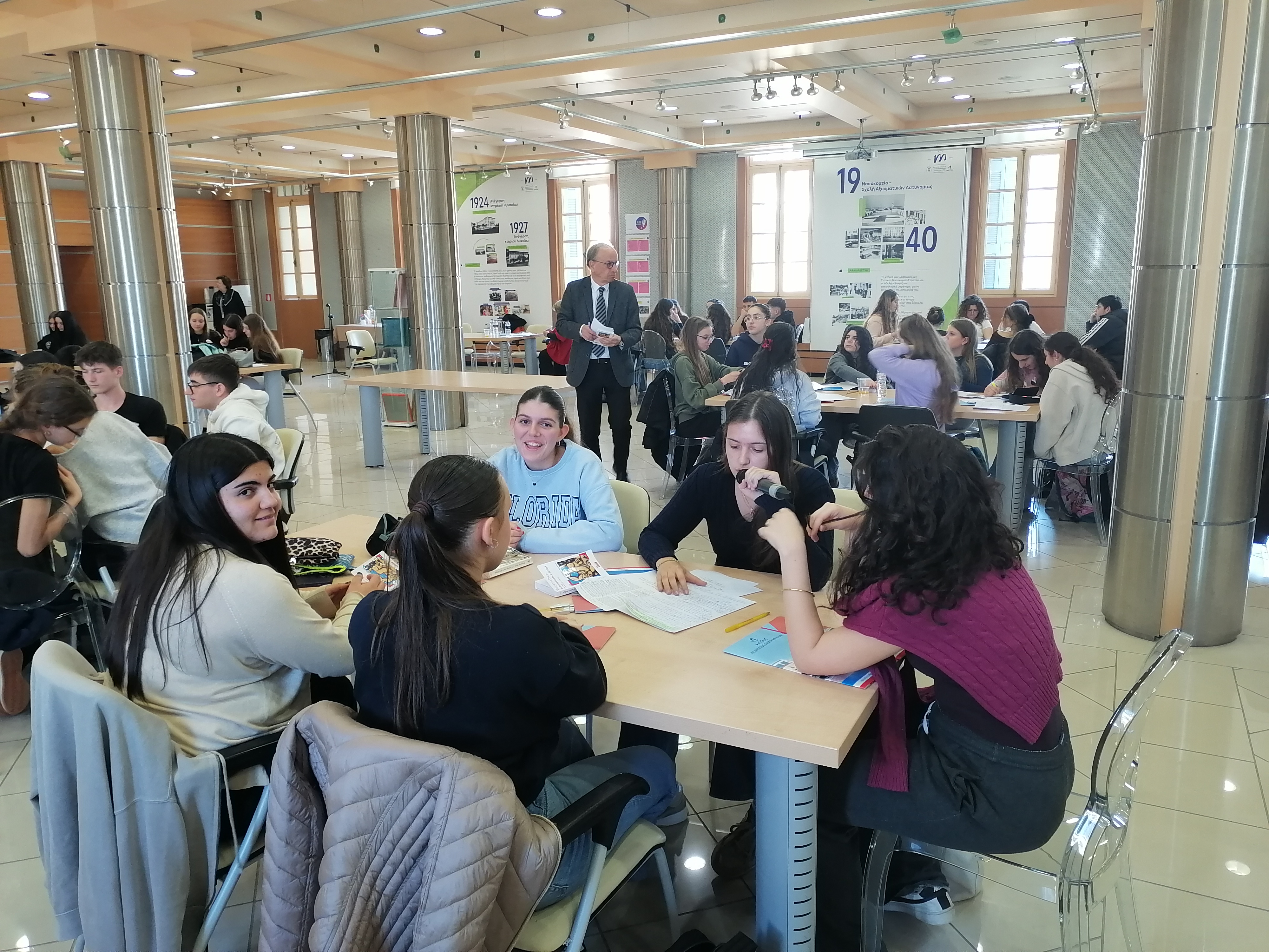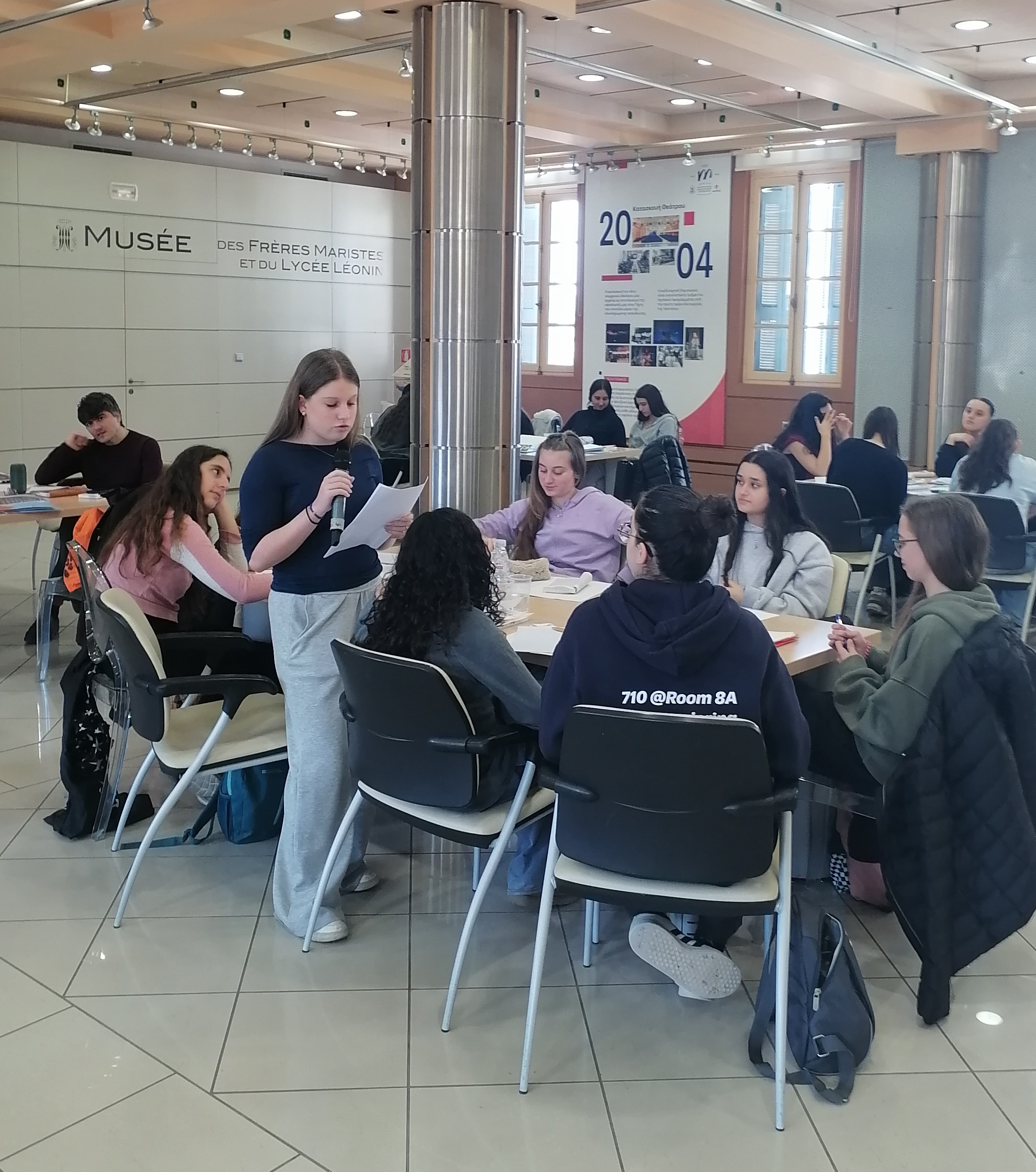 Μία μέρα γεμάτη … λογοτεχνία πέρασαν 57 μαθητές του Λυκείου της Ελληνογαλλικής Σχολής Ουρσουλινών, φιλοξενούμενοι από τη Λεόντειο Σχολή Αθηνών. Με αφορμή το λογοτεχνικό έργο που μελετούν για τις εξετάσεις του Sorbonne C1, είχαν την τιμή να ακούσουν την πλούσια εισήγηση του καθηγητή του Πανεπιστημίου της Σορβόννης Paris IV, Μ. Denis LABOURET. Στη συνέχεια, χωρισμένοι σε ομάδες σχολίασαν επιλεγμένα αποσπάσματα του έργου - πάντα υπό την καθοδήγηση του κου Labouret - και παρουσίασαν τα συμπεράσματά τους.