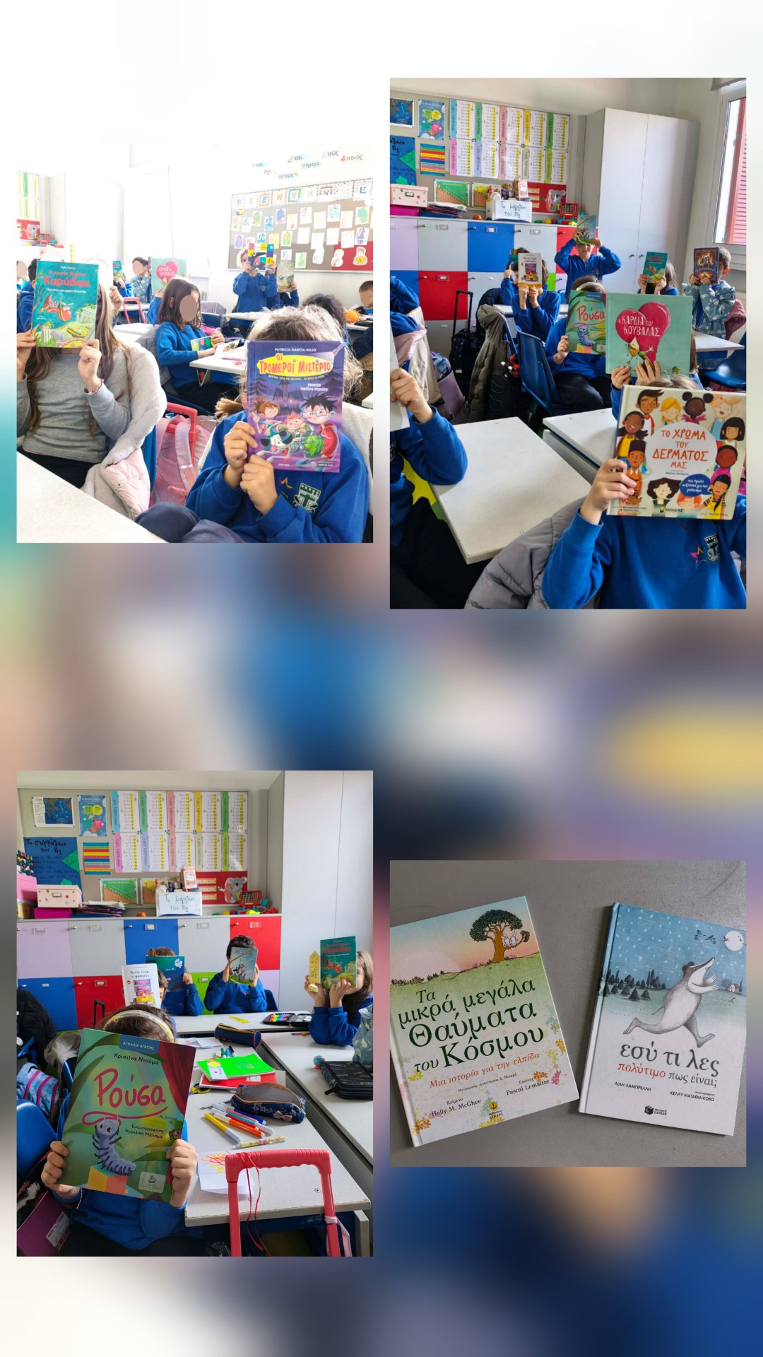 Με αφορμή την Παγκόσμια Ημέρα Παιδικού Βιβλίου, το Σχολείο μας διοργάνωσε μια σειρά από δημιουργικές και παιδαγωγικές δράσεις σε όλες τις τάξεις, με στόχο να αναδείξει τη σημασία του παιδικού βιβλίου και να καλλιεργήσει τη φιλαναγνωσία. Το παιδικό βιβλίο αποτελεί σημαντικό μέσο μάθησης και ψυχαγωγίας, συμβάλλοντας στην ανάπτυξη της φαντασίας, της γλώσσας και της κριτικής σκέψης, ενώ παράλληλα καλλιεργεί αξίες και ενσυναίσθηση. Ξεχωριστή στιγμή της ημέρας αποτέλεσε η παρουσία συγγραφέων και εικονογράφων, που με τη δημιουργικότητα και τον λόγο τους ενέπνευσαν τους μαθητές μας, δίνοντάς τους την ευκαιρία να έρθουν πιο κοντά στον μαγικό κόσμο του βιβλίου και να ανακαλύψουν τη χαρά της ανάγνωσης.
